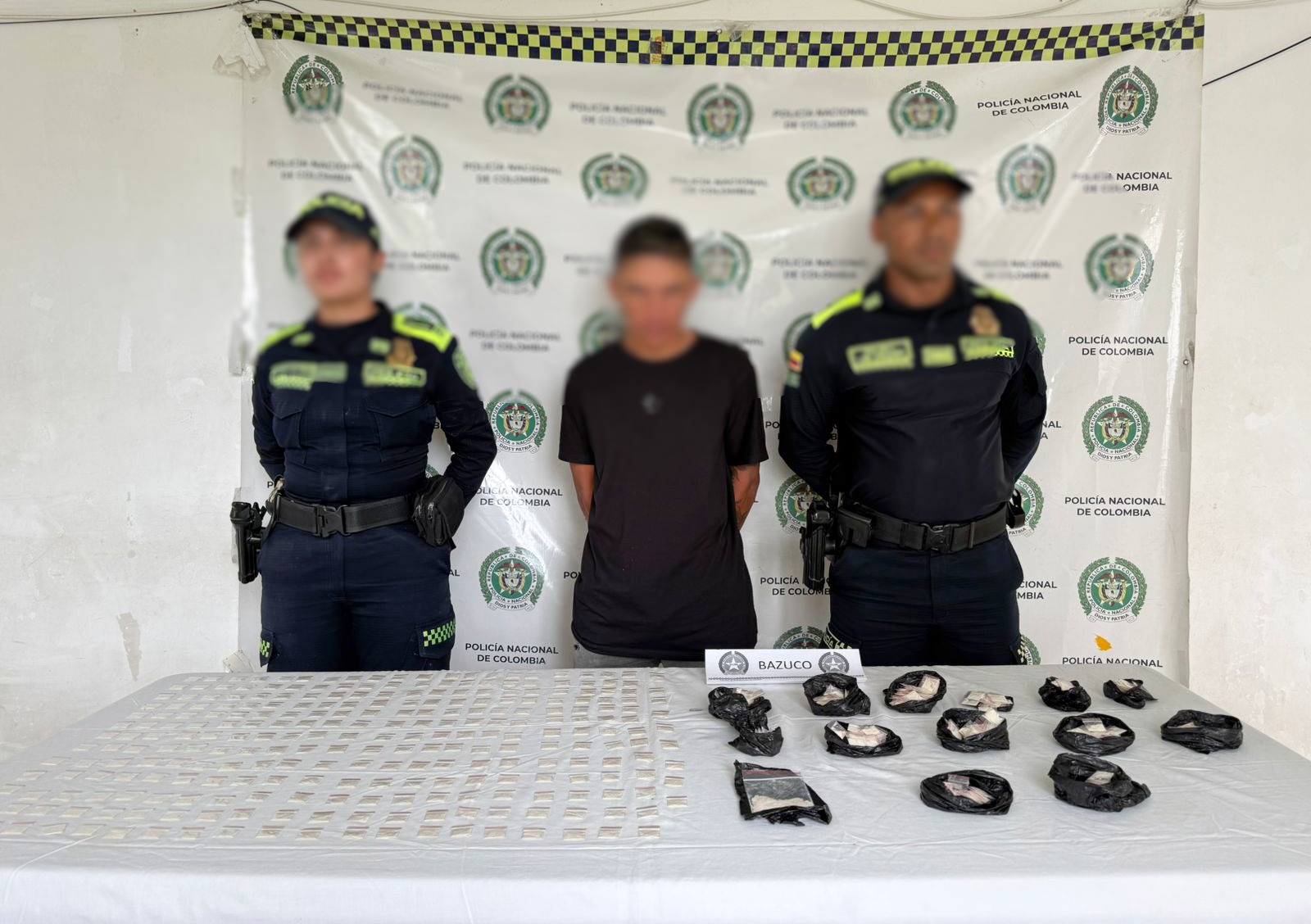 La acción judicial se desarrolló mediante dos diligencias de allanamiento y registro en el barrio San Diego, donde fue capturado un hombre conocido como “El Negro” o “La M”, señalado de ser el encargado del almacenamiento y distribución de basuco en diferentes puntos móviles de expendio en este sector y en el barrio El Martillo.