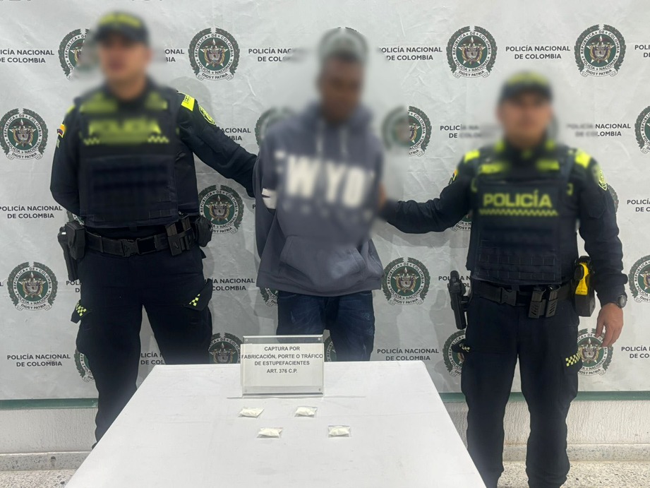El procedimiento se realizó en el barrio San Vicente, donde durante labores de registro a personas fue capturado un ciudadano conocido con el alias de “Bola Ocho”, a quien se le hallaron varias dosis de clorhidrato de cocaína, motivo por el cual fue judicializado por el delito de tráfico, fabricación o porte de estupefacientes y dejado a disposición de la Fiscalía General de la Nación.